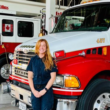 Lisa started as a volunteer in 2018 with the Otter Point Fire Department and worked at Metchosin Fire as the Fire Smart Coordinator, before becoming a career firefighter with CFB Esquimalt Fire Rescue in 2022. She is passionate about community service and training. She works as a Live Fire Technician at the Otter Point Training Centre, instructs EMR, First Responder Mental Health and Fire Service Instructor. She is deeply honoured to part of the Fire Service and is grateful for the opportunity to share that with others, especially youth.