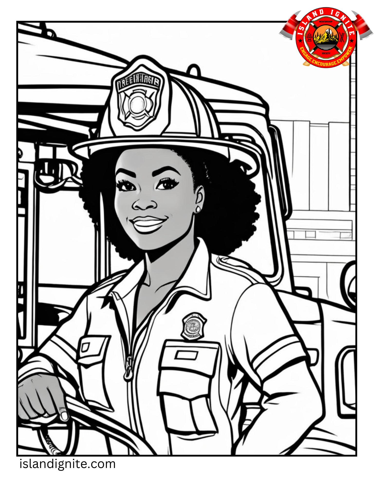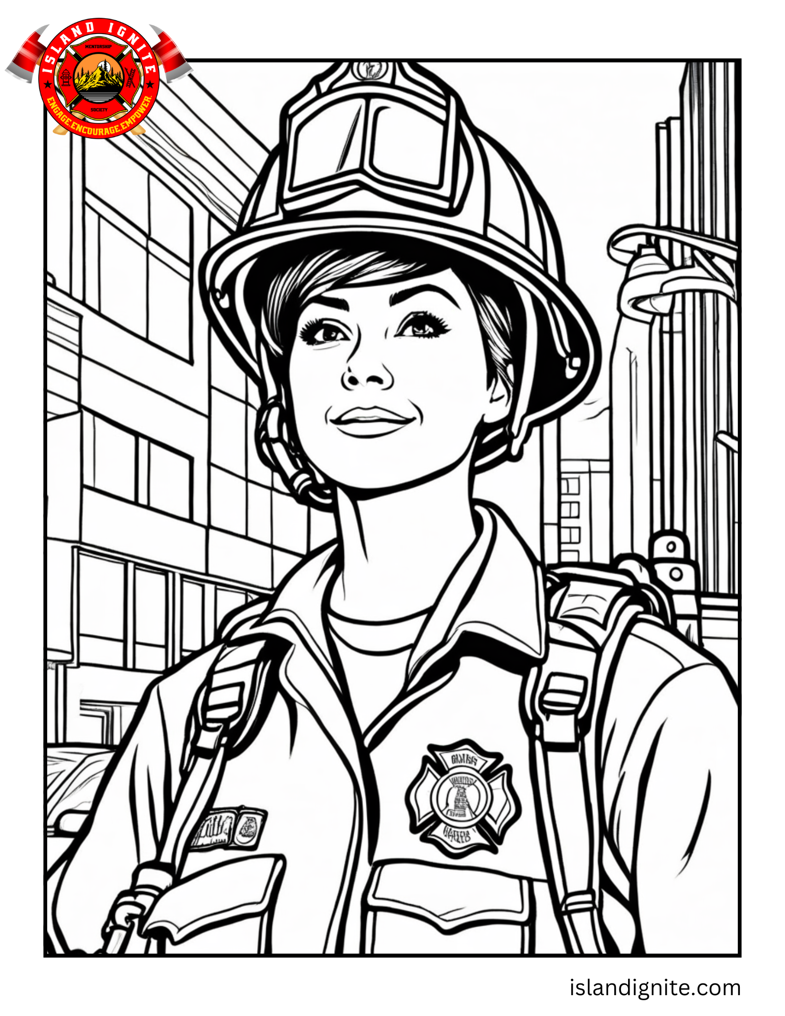 We thought it might be cool to offer colouring pages for that kid in your life that needs to see female representation in the fire service.